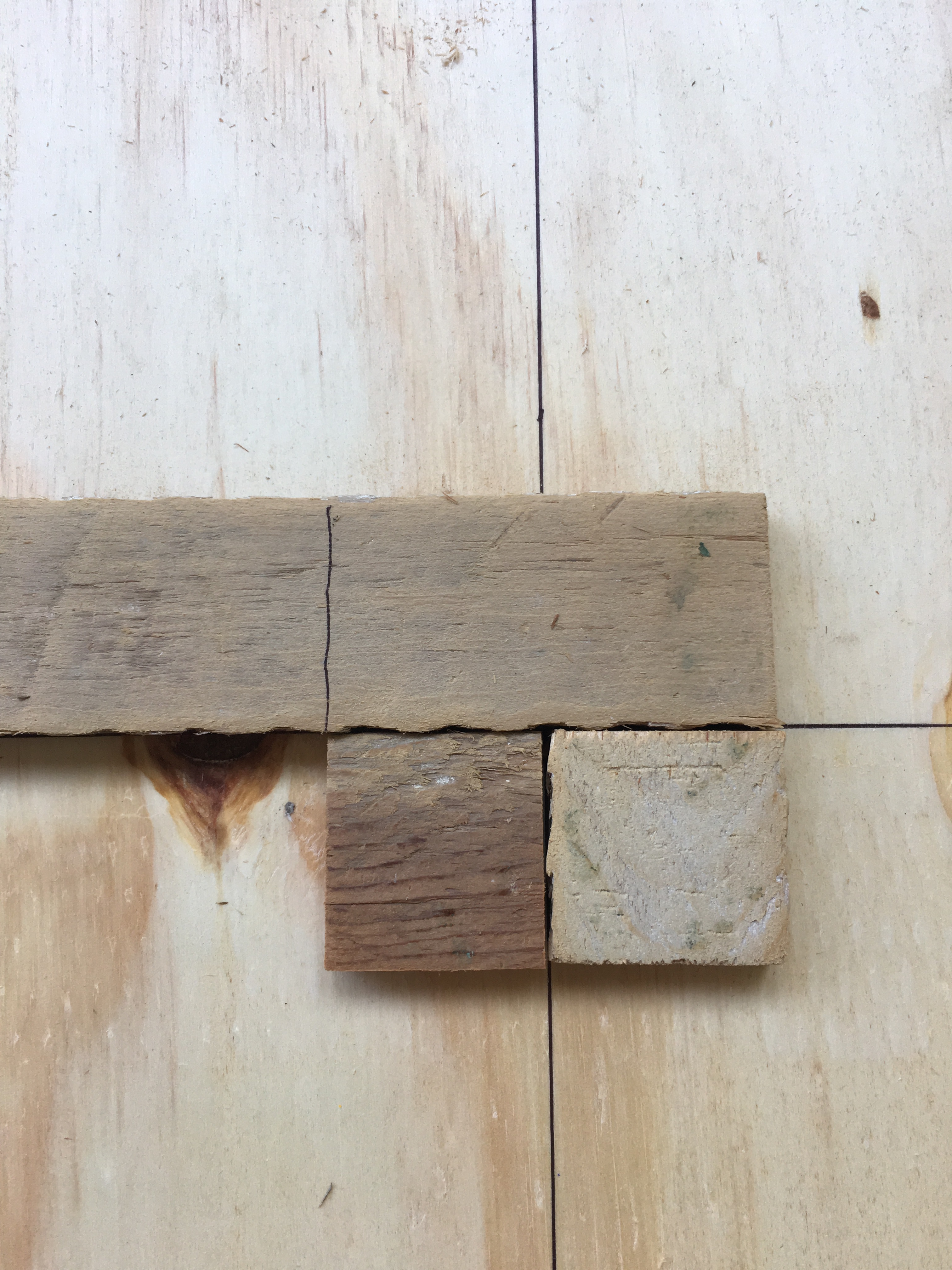 Next piece of lath is raw side up. Line up and mark as shown above. Cut the lath along your cut line and put into spot.